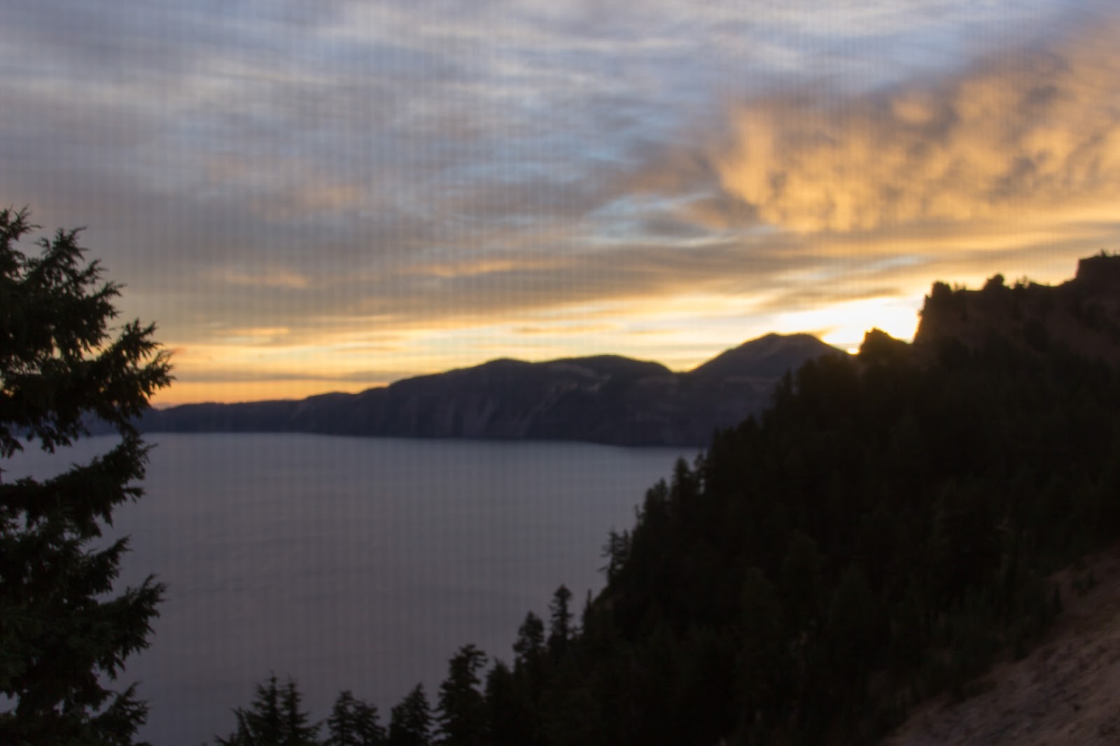 We woke this morning just in time to catch a pretty sunrise peeking over the crater rim. The shot is not brilliant because we couldn’t remove the flyscreens from our window, but you get the picture.