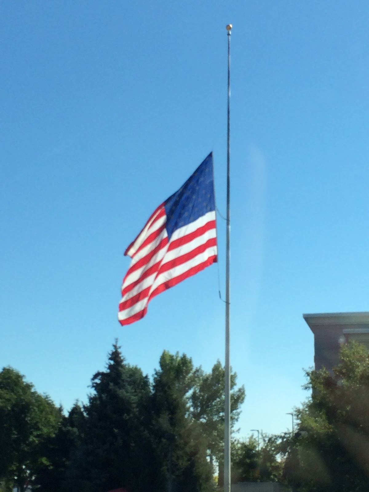 As we were driving through the area we noticed this huge flag at half-mast and were reminded that today is 9-11. A day that Americans will never forget