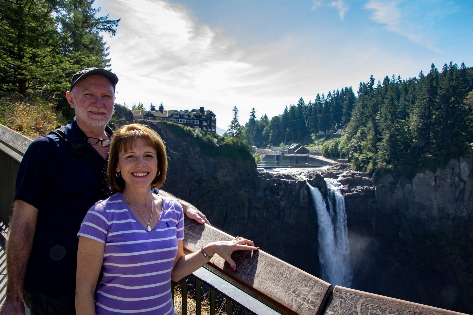 Back up in the Market we met Ruth and Mac from St Louis, Missouri who were also waiting for the Shutter Tours mini bus. We didn’t have to wait long before Terry, our guide, collected us and whipped us out of the city to our first stop of the say, Snoqualmie Falls State Park. The drive out of Seattle took us across lovely lakes and past some pretty suburbs looking cool and green in their forest setting. Terry pointed out where Bill Gates lives and regaled us with stories of the other tech and business giants that made their start in Seattle, like Amazon.com. He also discussed the reputation Seattle has for being a rainy city and admitted that it was well-earned. Last year, during the wet months from October to March, they had a stretch of over 90 days of rain!