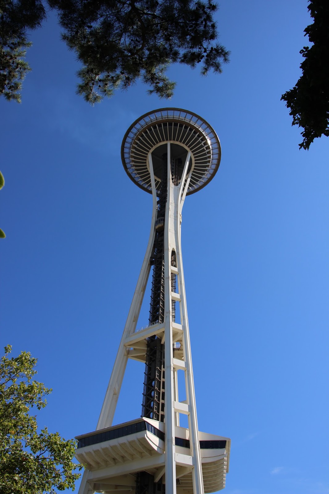 The tour ended back at the Market where Neil and I grabbed a quick lunch of seeringly spicy sausage hot dogs before we headed backuptown for a brief stop in at our hotel. Next stop was the ride on the Seattle Monorail up to the Seattle Centre to see the Space Needle. The Seattle Centre , Space Needle and Monorail were all built for the 1962 World Fair and remain today as one of the city’s primary tourist attractions. There are a number of museums and playgrounds and theatre complexes here but the Space Needle is the prime attraction.