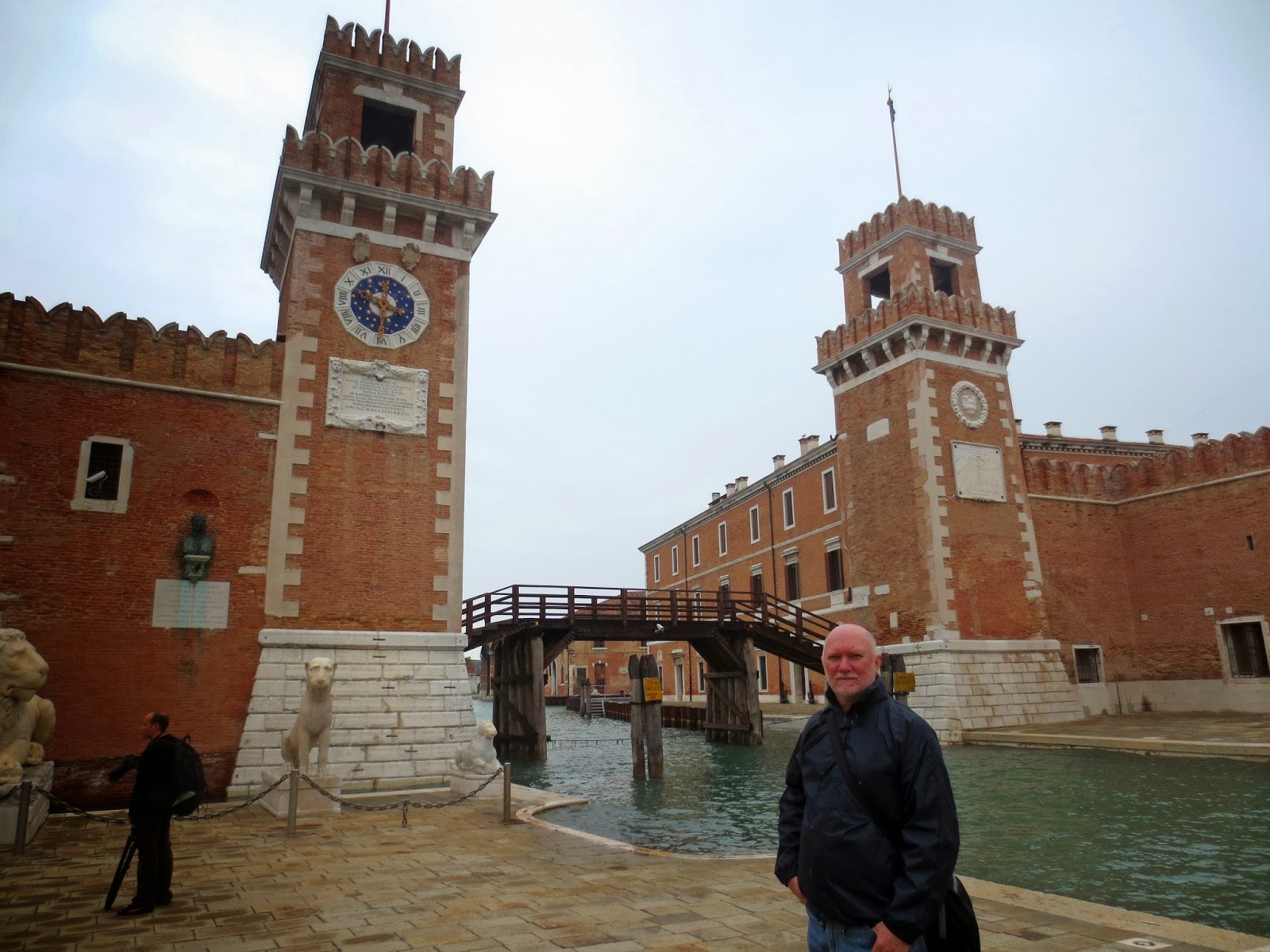 We walked down to the waterfront again and watched the gondolas bob up and down as the waves splashed over the edge of the canal. We decided to stroll east along the water to take a look at the Arsenale. This was the area that is still owned and managed by the Italian Navy, that in the past was a colossal ship building area and gave Venice much of its mastery of the seas.