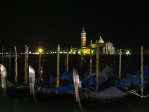 The walk back to the hotel was wonderful, it was so much quieter in the evening when all the bus and cruise crowds had returned to their hotels on the mainland and their cruise ship. The gondolas bob up and down on the water and beautiful San Giorgio Maggiore Church is lit up against the sky across the canal. The orchestras were still playing at the cafes in St Marks square but now you could really appreciate them.
