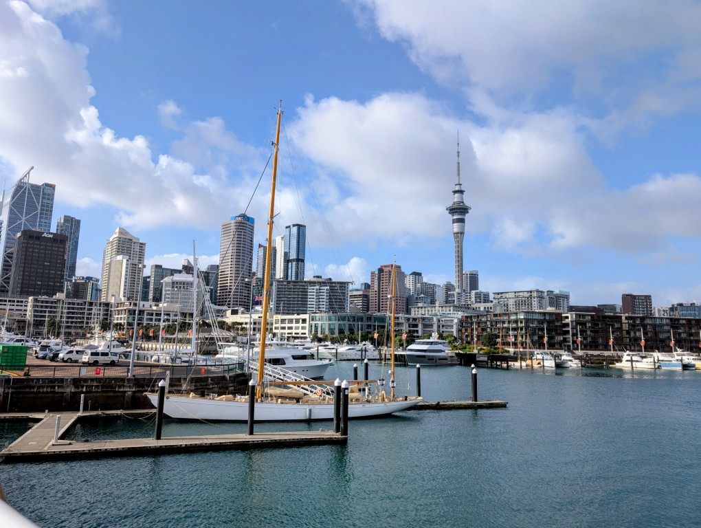 I’d set the alarm for 7 am as there was a lot on my sightseeing list for today. After the rain had stymied some of our plans for yesterday, I’d tacked a few extra items onto the list, so it was going to be a busy one! Luckily, we woke to a much brighter day, so straight after a brilliant hotel breakfast, we set off to explore Auckland’s harbourfront on foot.
