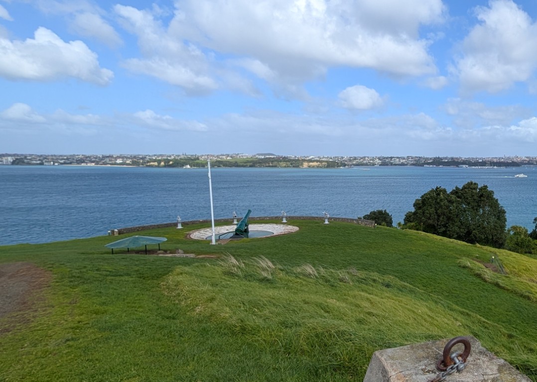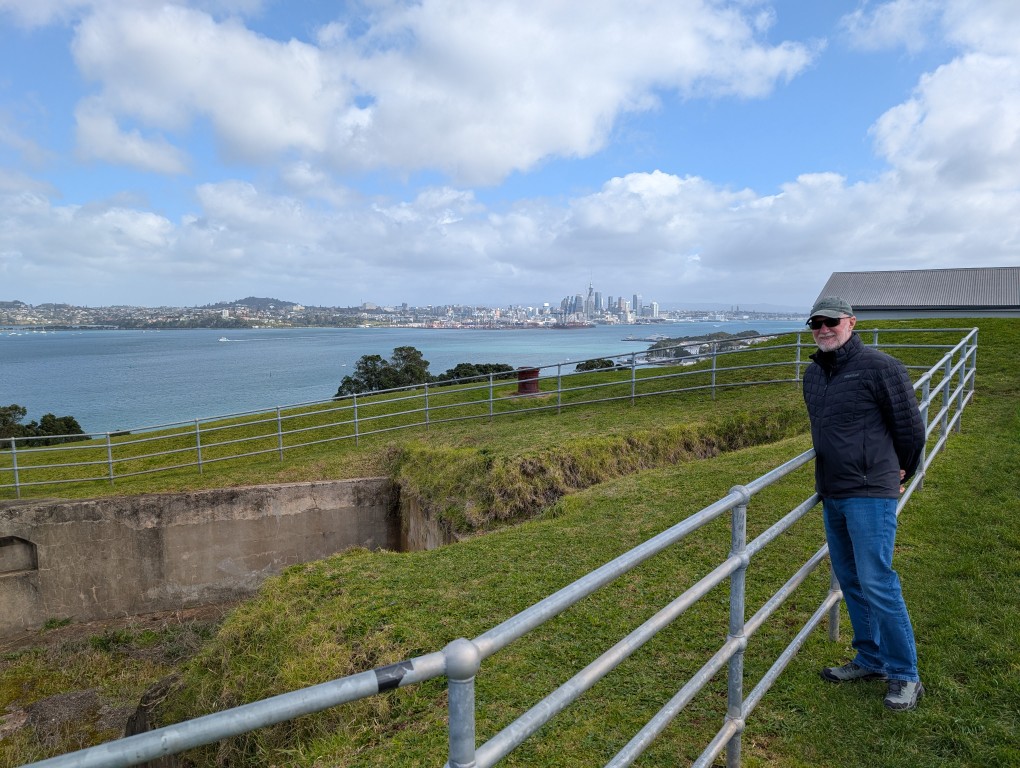 Next, we headed for the North Shore, which took us across the famous Harbour Bridge. I’d expected heavy traffic, but it was surprisingly smooth for a major city. We drove through the pretty suburb of Devonport to North Head, another of the dozens of ancient volcano peaks you see dotted all around Auckland. At the summit is Fort Cautley, a military complex dating back to 1885 with an old disappearing gun and observation posts. Neil always enjoys a bit of military history, so I knew this would be right up his alley, and the fabulous views back across the harbour to the city were an added bonus for me.