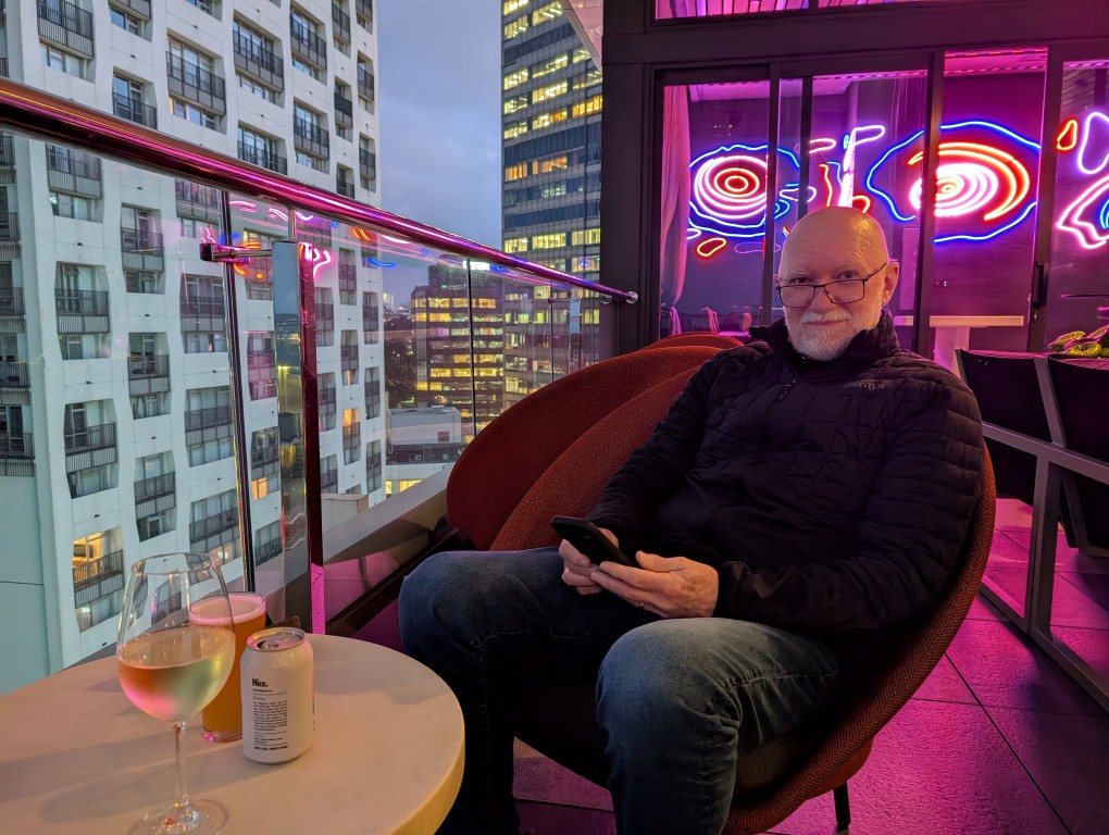 After a couple of hours rest back at the hotel, we decided to check out their rooftop bar. It was surprisingly mild ( or we were just well rugged up!) so we were comfortable sitting on the terrace overlooking the city lights and the harbour.