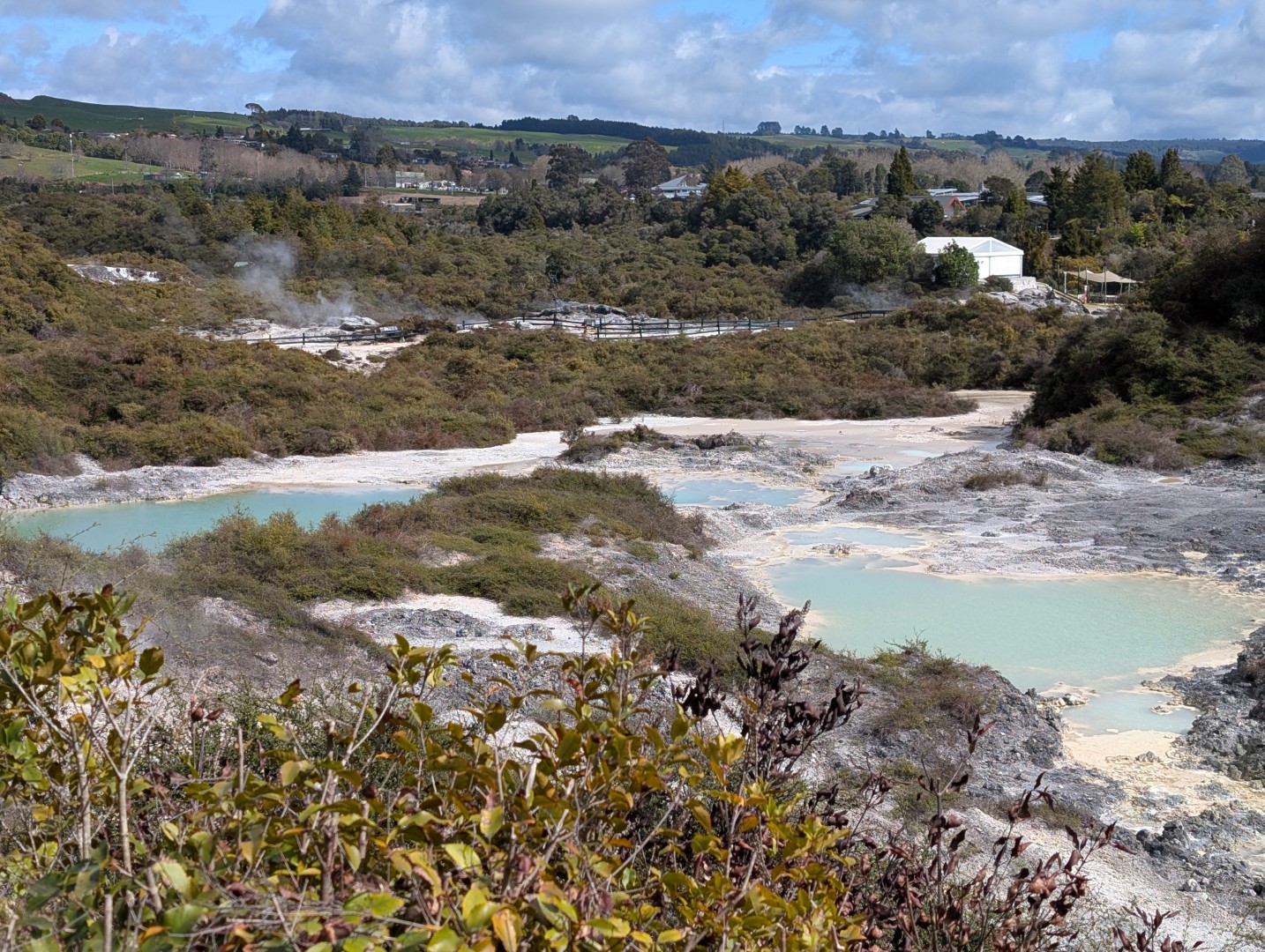 After the tour, Neil and I continued up the hill behind the village to see the last of the Geothermal areas, there were some great views up the top of the hill ,looking over the village to the lake.