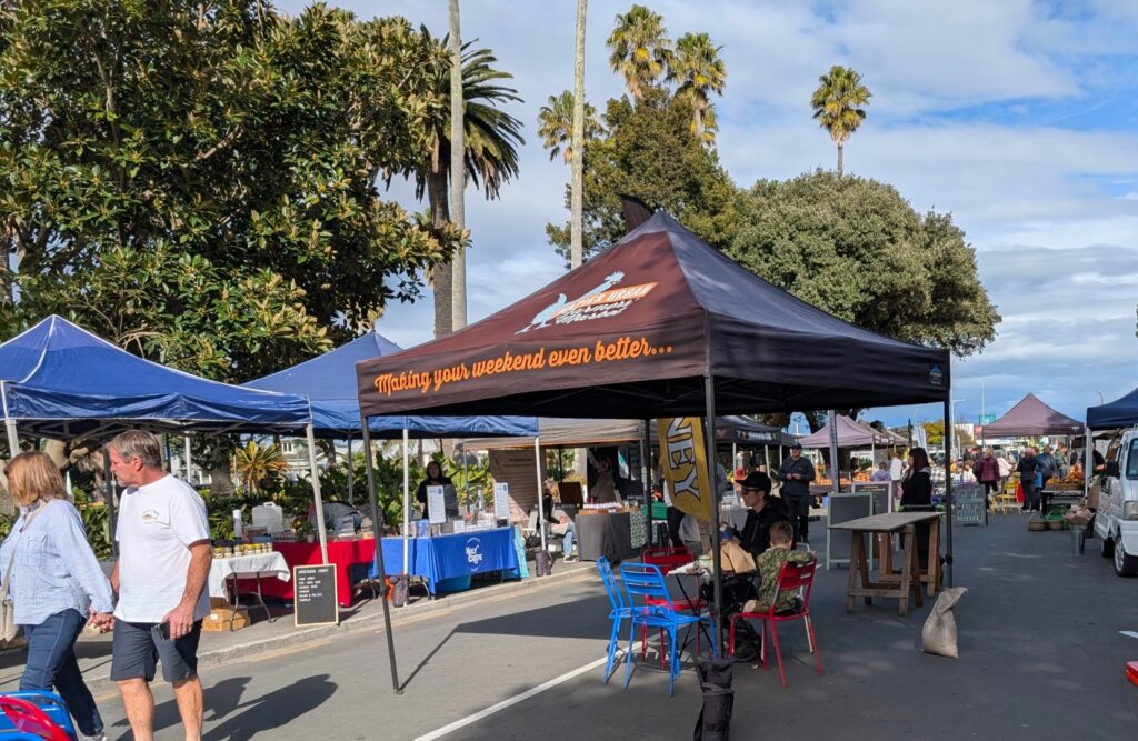 We had plenty of time to get organised before walking about 10 minutes down through the twon to the old Women’s Rest Building in Clive Park, which is the new home of the Art Deco Trust. The lady at the counter was delighted to have two extra takers for the 10am tour and suggested we fill in the time before hand by checking out the small Saturday farmers market which was set up just outside their door. That took about 3 minutes! So we sat on a bench in the pretty park to wait for the tour to start.