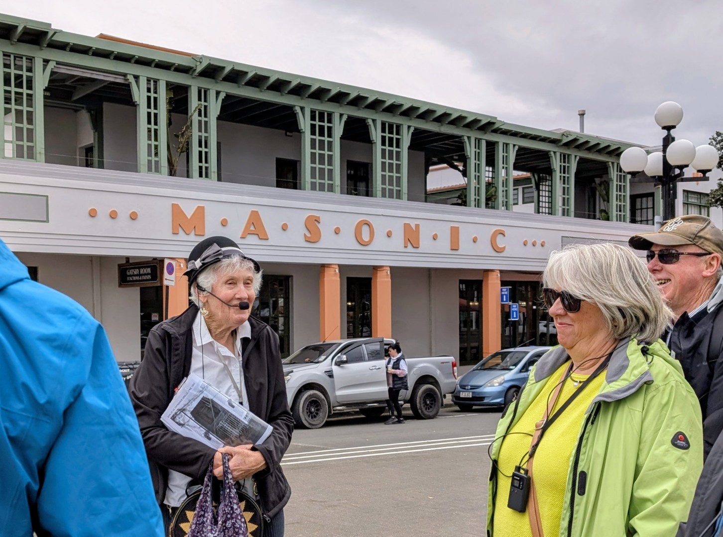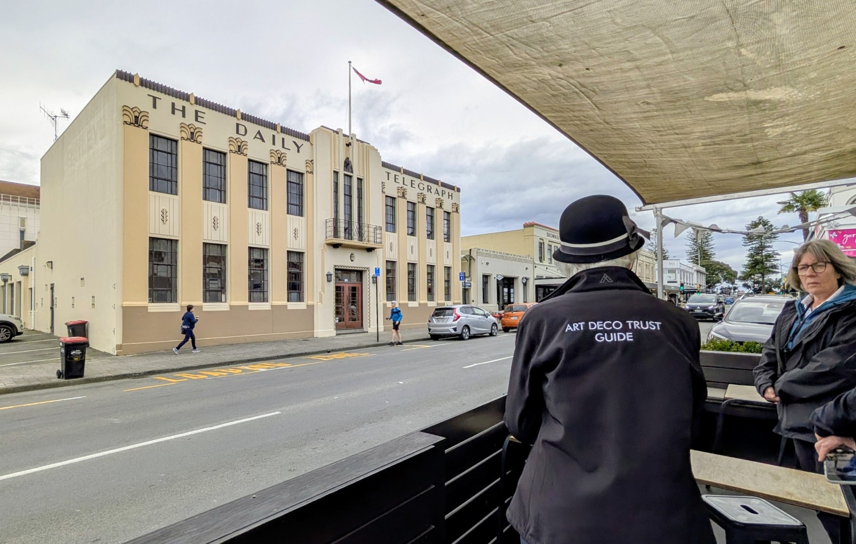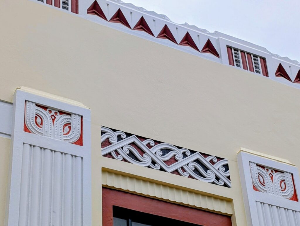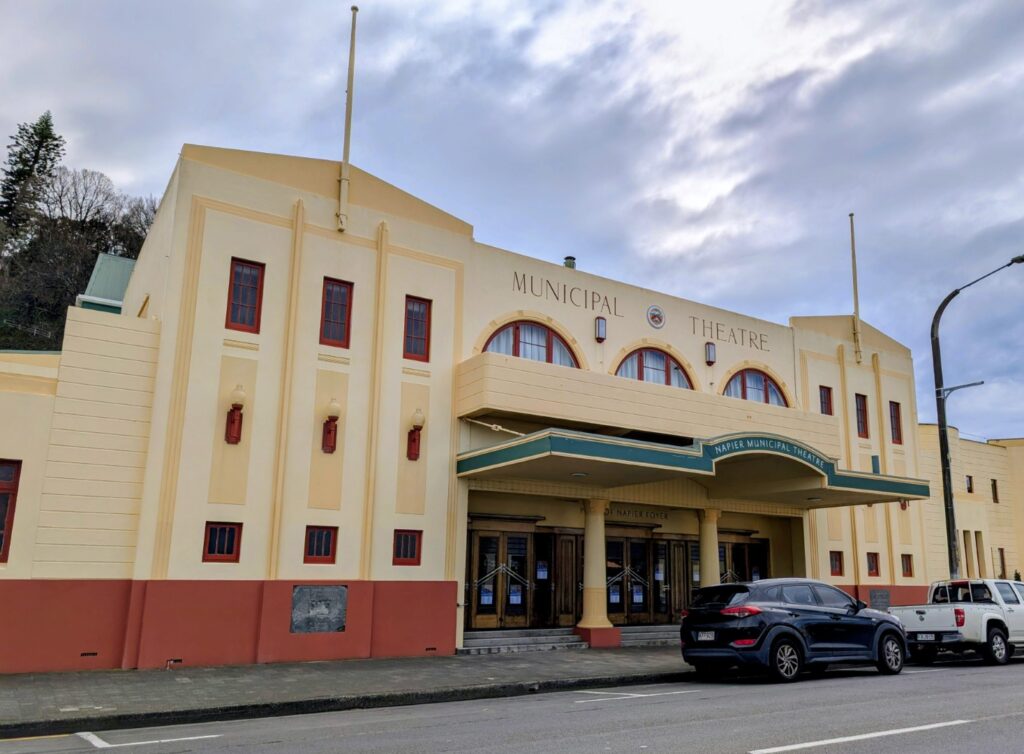 Susan, our guide , first directed us to a small theatre room where she showed some slides and a 20 minute film about “The Day That Changed the Bay”, the day of the earthquake in February 1931. Then she guided us through the town for a little over an hour , telling us about the specific Art Deco features of the different buildings and also some of the stories of the people that lived through the Earthquake…( like the chap who told rescuers to “just cut his leg off”, which as it was a wooden leg, wasn’t really such a drama!) and the sad stories of some who died ( like the poor lady trapped in the cathedral buildings who simply couldnt be extracted so the local Dr gave her an overdose of Morphine to put her out of her misery)