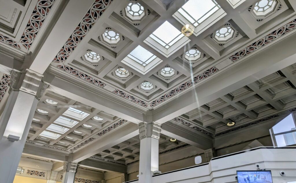 We woke to a very grey day this morning, but at least it wasnt raining. This was more important than normal as our plan for the morning was to join one of the walking tours run by the Art Deco Trust. We had a good buffet breakfast in the ground floor restaurant, and for anyone following along on the mushroom reports… today there were lovely mushrooms… but no tomatoes again!