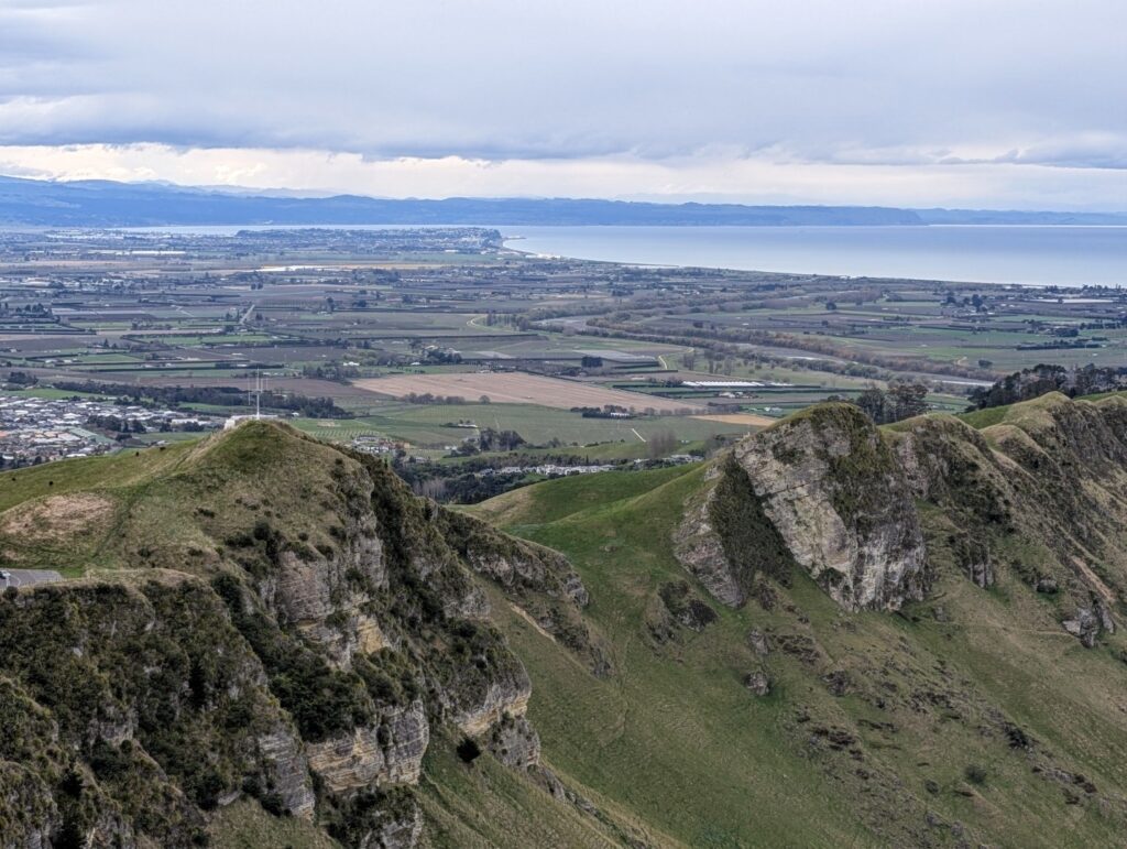 After the tour, Neil and I returned to the hotel and set out in the car to Te Mata Peak. The peak is Tn iconic feature of the Hastings District skyline, rising 399m above sea level and is steeped in Māori legend. It is said that Māori chief Te Mata fell in love with the daughter of his rival, the Heretaunga chief. To prove his worthiness and win the beautiful Māori maiden’s love, Te Mata accepted a series of near-impossible challenges. The handsome chief choked and died attempting his final task, which was to eat his way through this rocky range. Te Mata Peak depicts the outline of his prostrate body and is called the Sleeping Giant by locals.