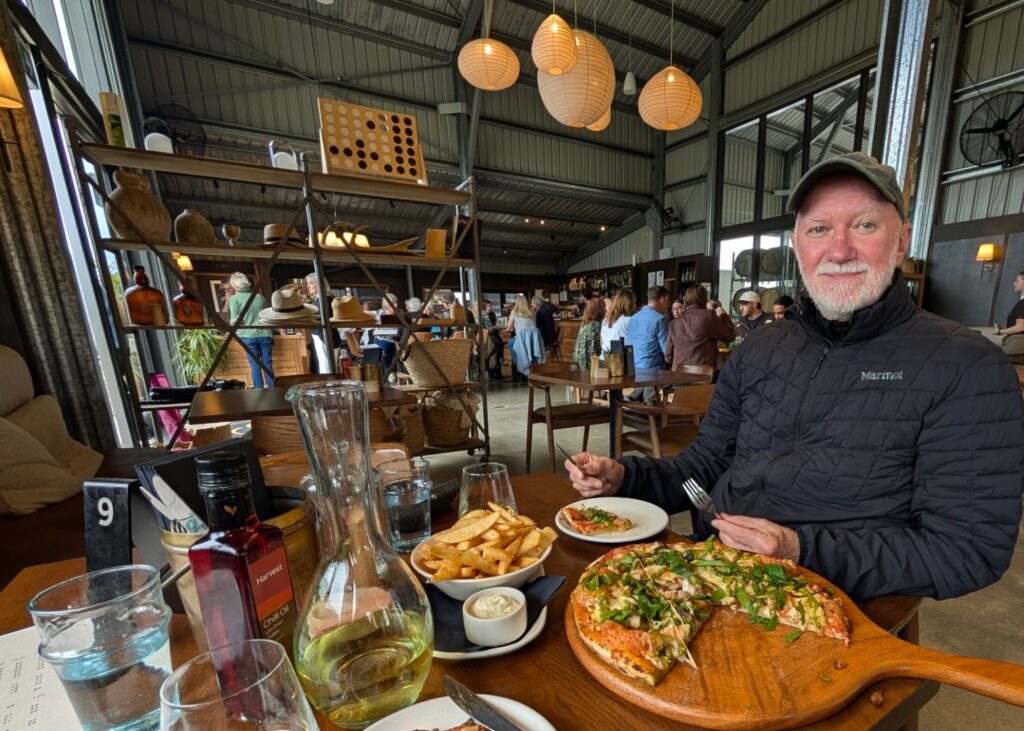 It was now heading towards 1pm, and as Hawkes Bay is one of NZs premier winery regions I had selected a couple of alternative wineries for us to stop for lunch. We first drove to Abbey Winery, but it turned out they were closed until “Spring”, so we set off back towards Napier to Shed 530 Winery which turned out to be an excellent choice. The woodfired chicken and pesto pizza was delicious and we both really enjoyed the lovely Alberino wine we had with it.