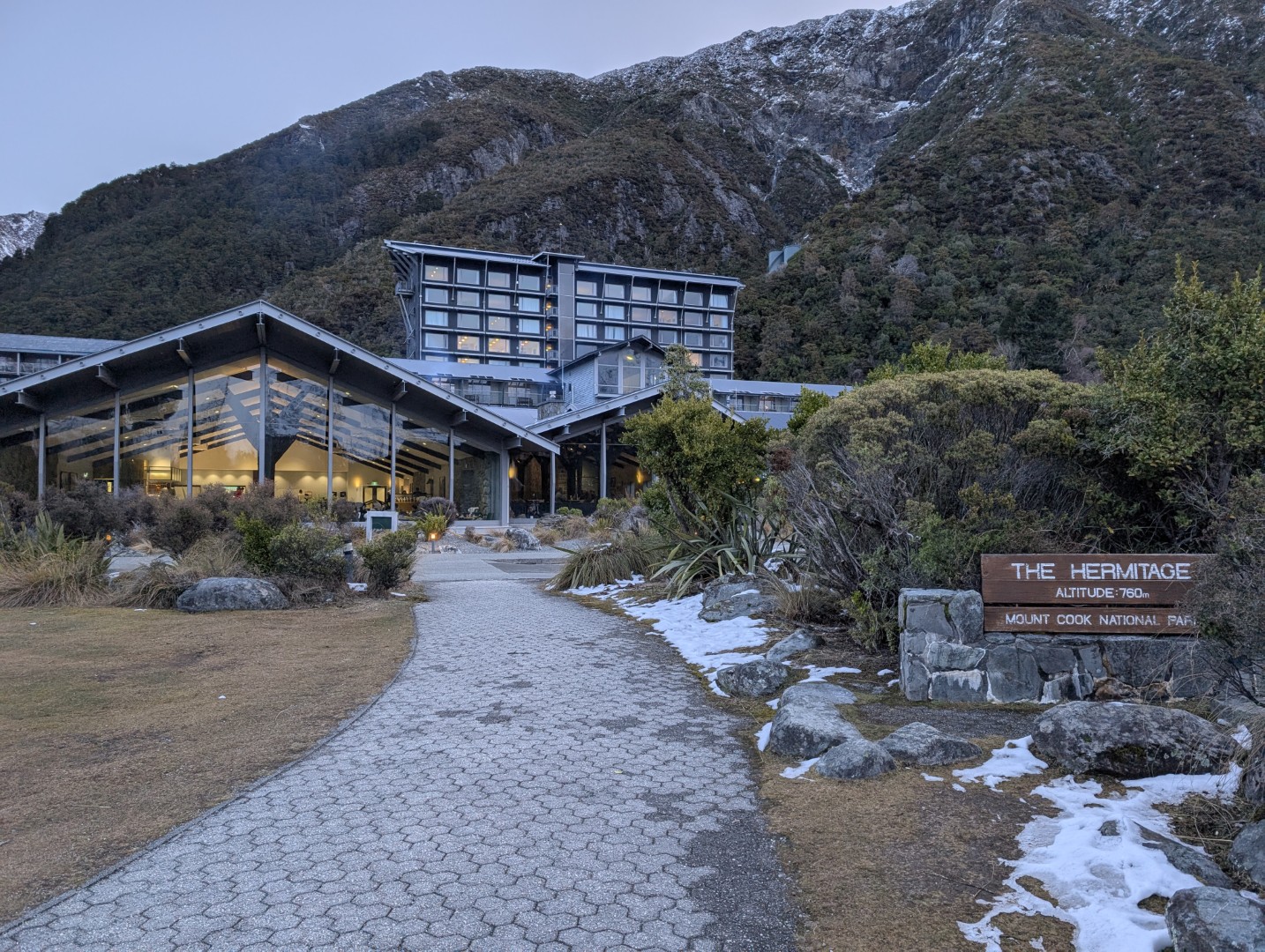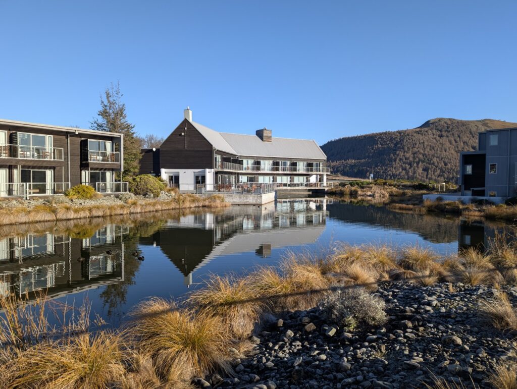 After that energetic workout we were ready to head to our hotel for the night, the lovely Hermitage Hotel. The hotel has a long history , it was first built in 1884 but it was destroyed by severe flooding in 1913. A larger hotel was constructed on the present-day site to meet growing tourist demand. It opened in 1914 and, after initially struggling, flourished under the lease of the Mount Cook Motor Company, which offered some of New Zealand’s first package tours. This hotel was completely destroyed by a fire in 1957. The current hotel was built by the government’s Tourist Hotel Corporation and opened in 1958. It has been extensively refurbished and expanded over the years and was sold to private owners in the 1990’s .