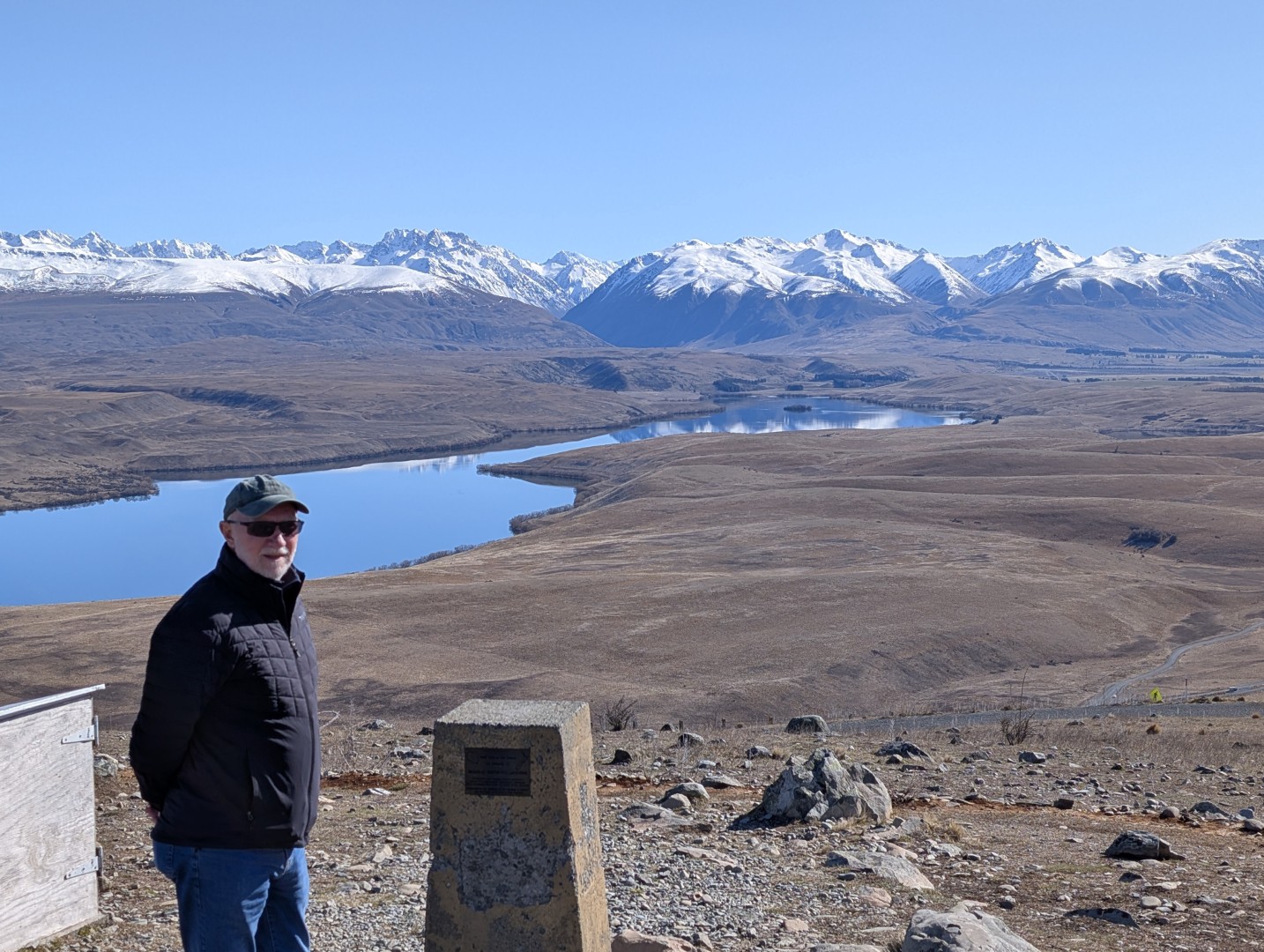 After this we turned off on te road that leads north towards Aoraki-Mt Cook National Park, We stopped at “Peter’s Lookout”, which offered a lovely view up the lake to Mt Cook. I haven’t been able to find out who “Peter” was , but his lookout is a beauty!
