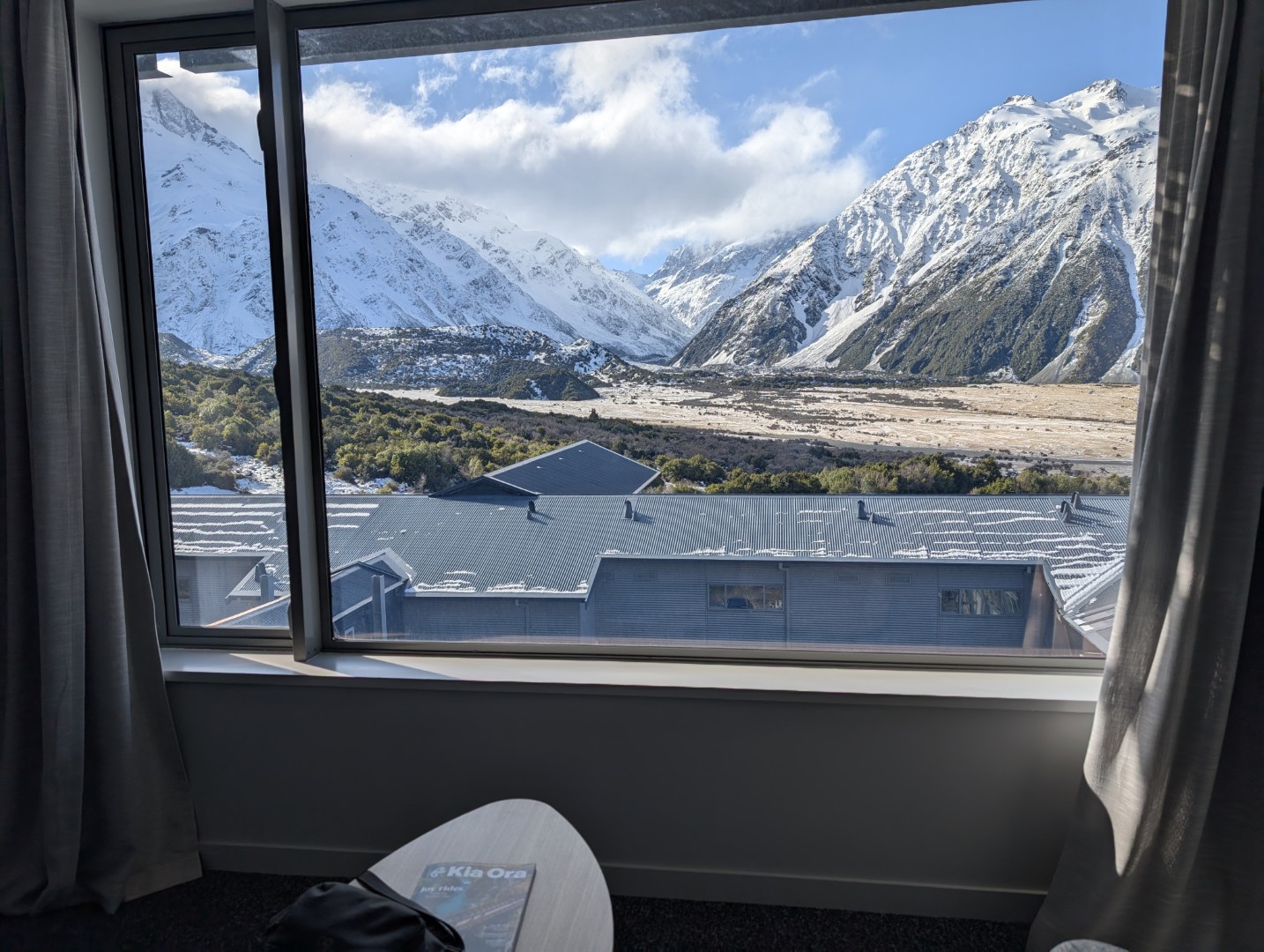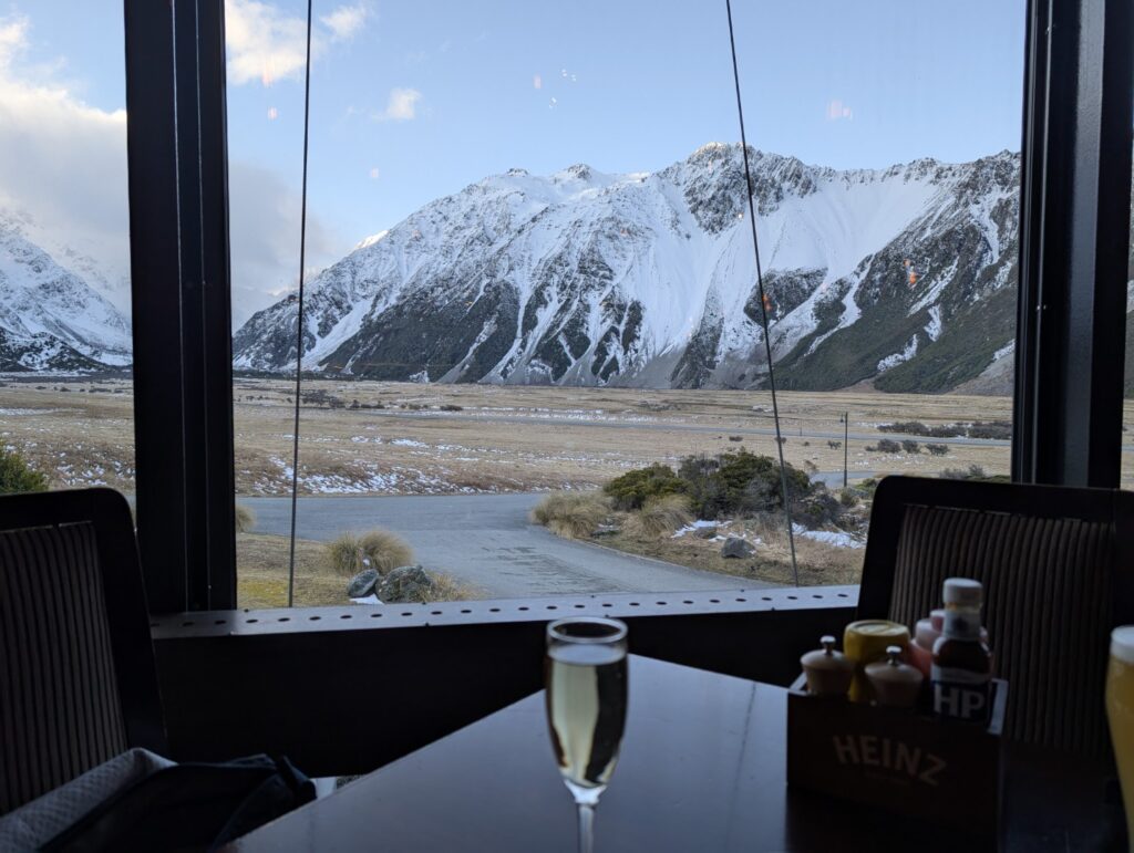I stayed here when I was travelling with my Mum and Dad in 1979, I remember it as a very grand hotel back then. When we visited Mt Cook with the children in 2001, we stayed down the road in the Mt Cook Lodge & Motel instead. I was excited to come back and stay here this time and booked us a room with a panoramic view of Mt Cook ( although most rooms have a panoramic view of Mt Cook here!)