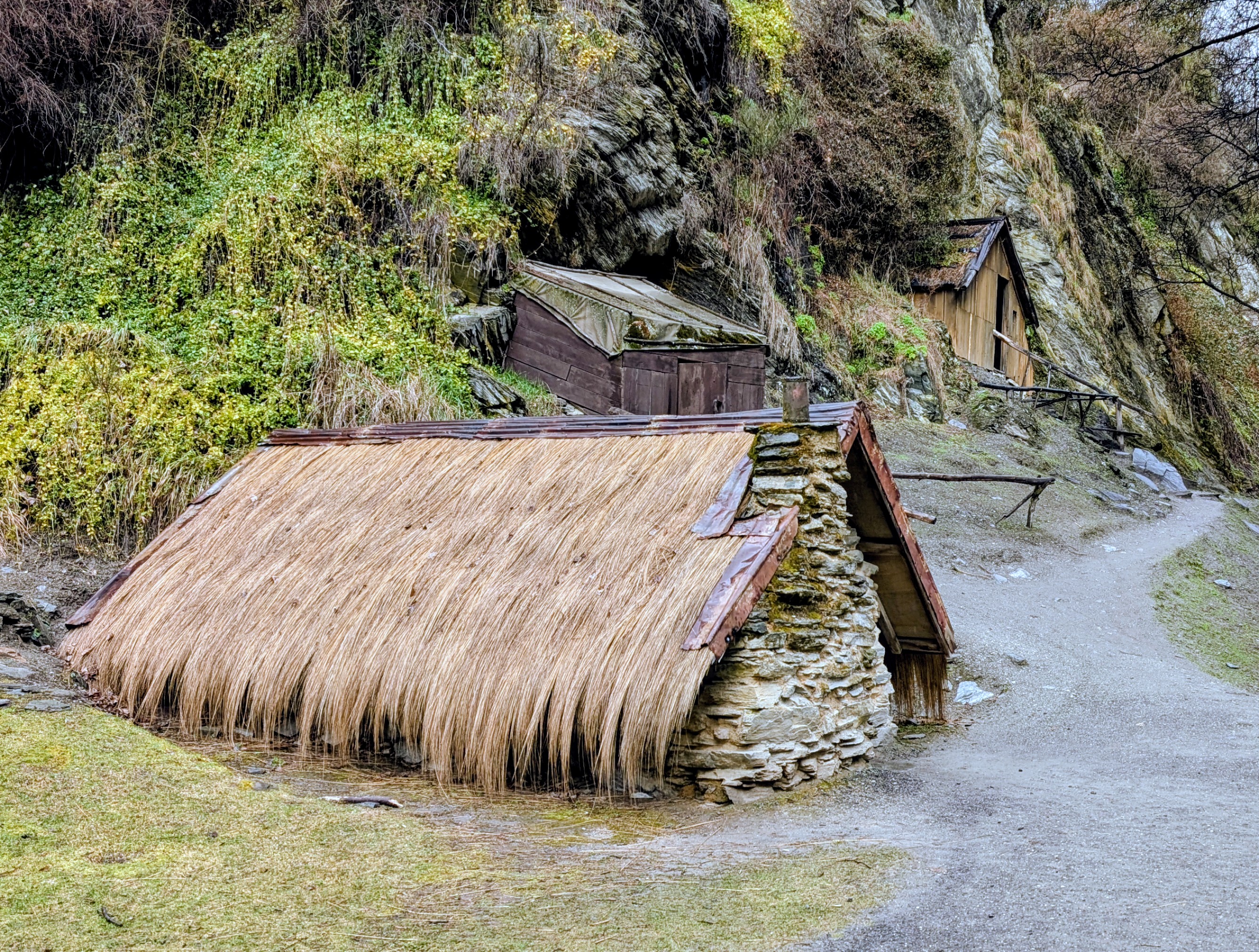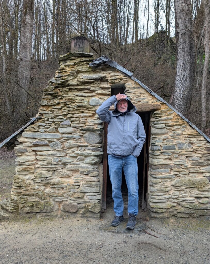After finding a parking spot we walked down to the Arrowtown Chinese Settlement. Central Otago had several Chinese settlements. Arrowtown’s was studied extensively by archaeologists in the early 1980s and is the best memorial to these settlers. It is now a mixture of stabilised hut ruins, reconstructions and restorations. The huts that they built for themselves are so tiny! Even I had to duck to walk in the door of them!