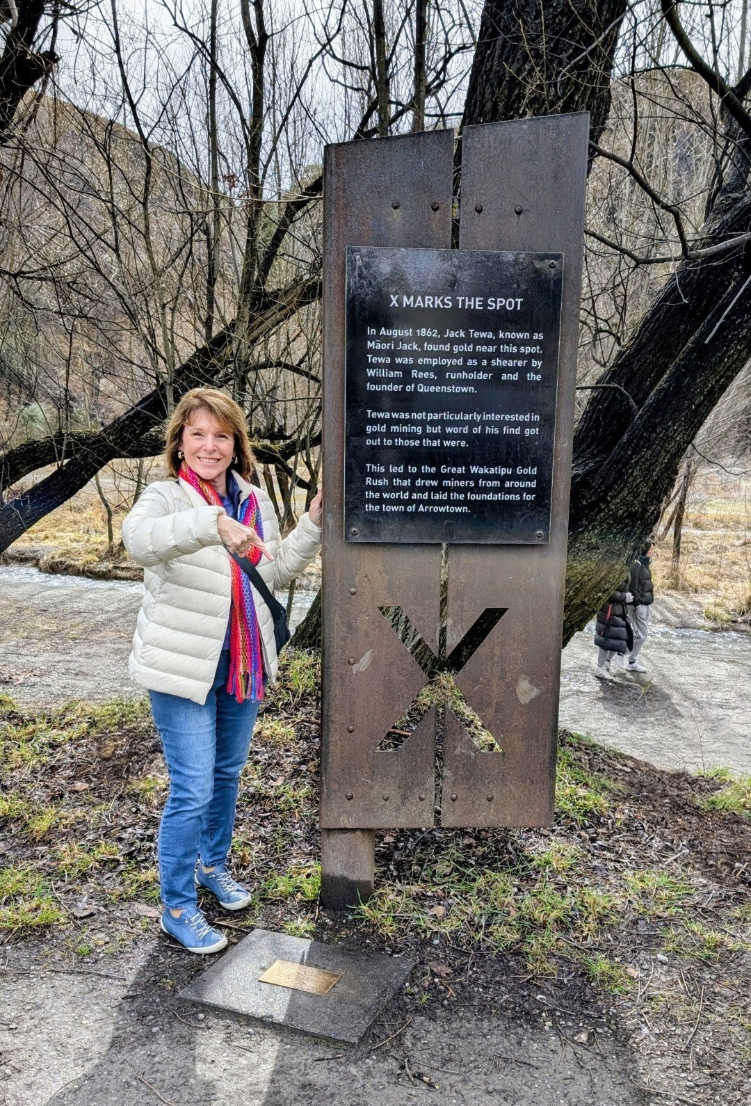 Before heading back to the car we searched for the place where “X Marks the Spot”! In the carpark down near the river there is a plaque and monument to mark the location where, in August 1862 ,Jack Tewa (known as Maori Jack) found gold in the Arrow River – and strated Arrowtowns boom time.