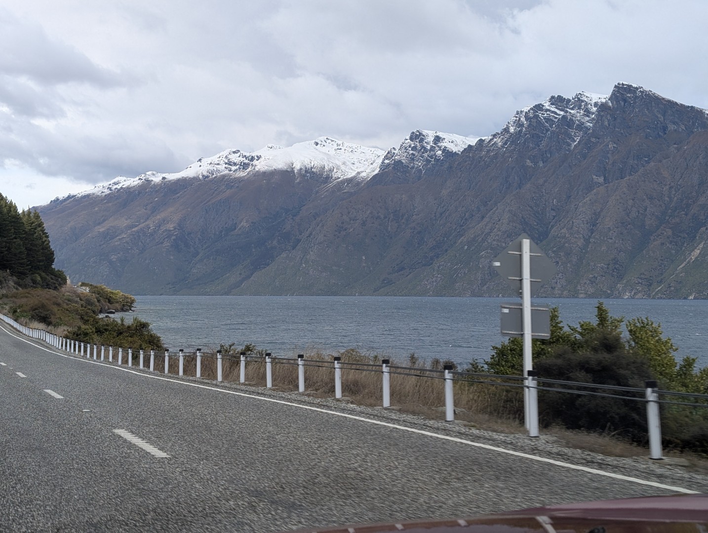 Our road led us back towards Queenstown but just after the airport we took a left turn and followed the road down along the lower edge of Lake Wakatipu.