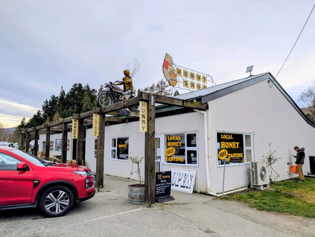 About 30 minutes drive beyond Kingston we stopped in at “the Hunny Shop” at Garston, another tiny town. The owners are local beekeepers that produce Manuka, Clover and Thyme honeys and other bee related products. I’ve recently started to enjoy honey again so we stopped in to taste all the flavours, I really liked the creamy clover honey so bought a jar to take home.