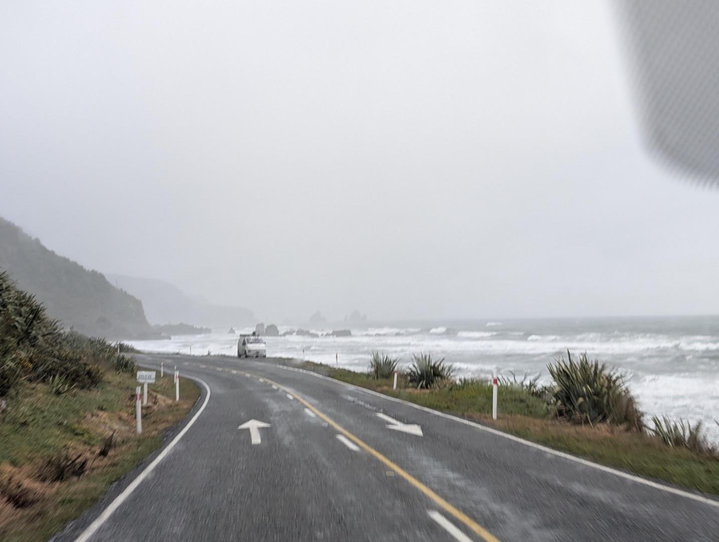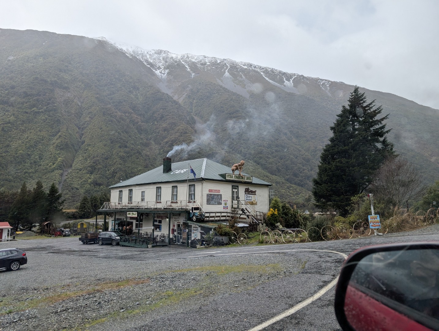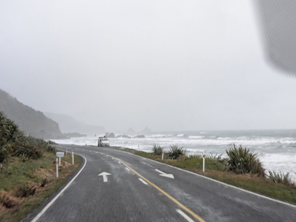 Driving down the coast was very wet and when we turned inland to start the climb up to Arthurs Pass we couldnt see the top of the high mountains, they were shrouded in cloud.